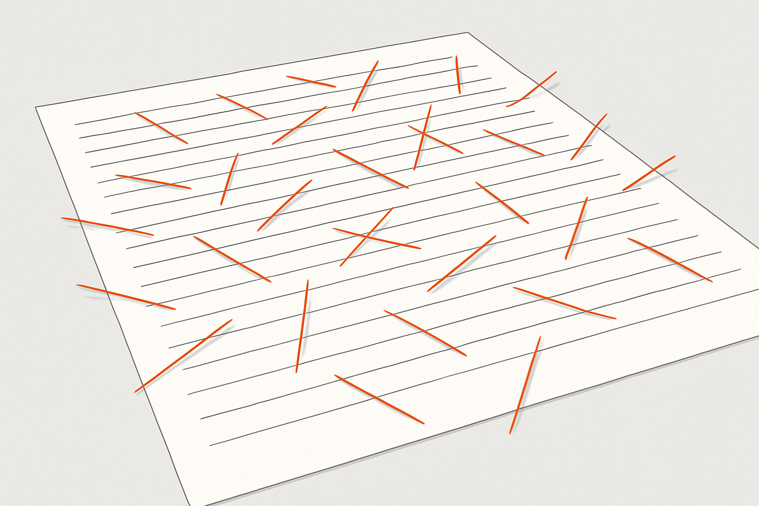 핵심 질문: 일정한 간격으로 평행선이 그어진 종이 위에 바늘을 무작위로 던졌을 때, 바늘이 선과 만날 확률은 얼마일까요?