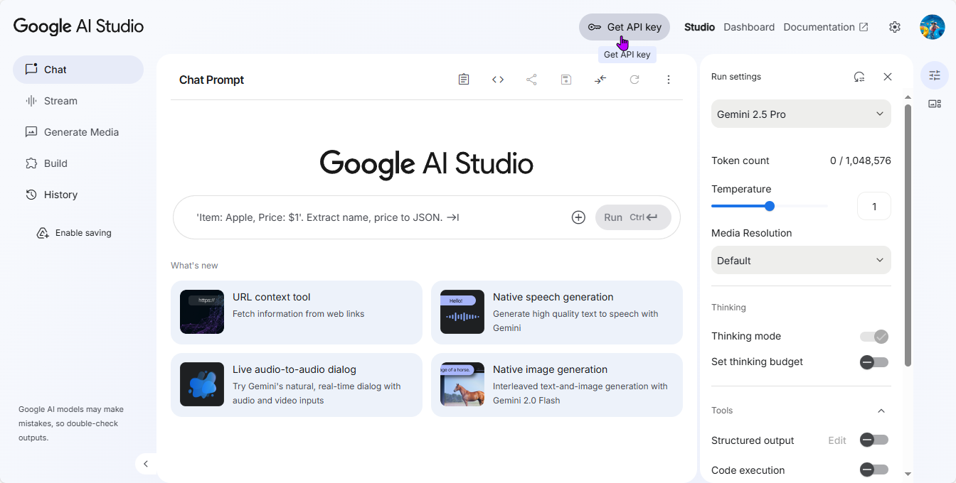 - Google AI Studio 접속 먼저, 구글 AI 개발자 사이트인 'Google AI Studio'에 접속하여 구글 계정으로 로그인합니다.